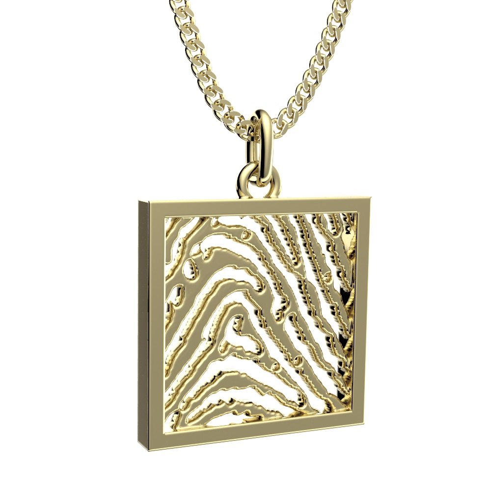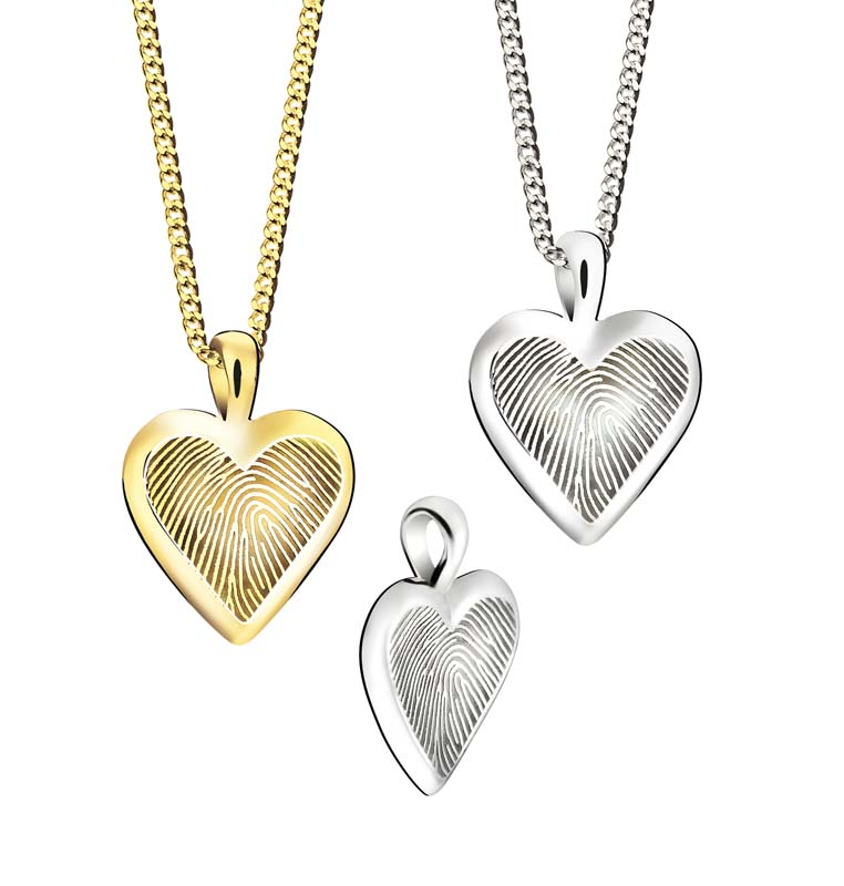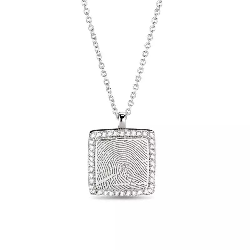 Sieraad op aanvraag te voorzien van gravure van vingerafdruk, tekst, pootafdruk, familiewapen, handtekening, symbool of dergelijke